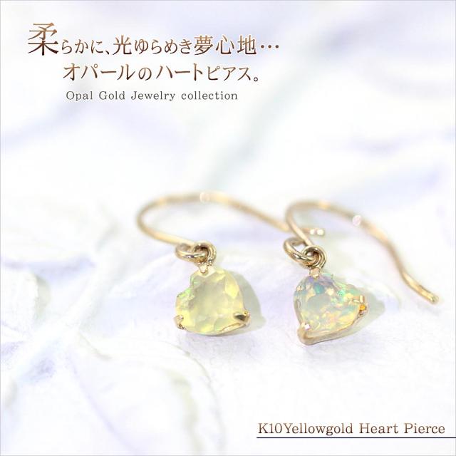 フックピアス レディース オパール ピアス フック ハート 10金 エチオピア オパールピアス かわいい 10月 誕生石 揺れる アクセサリー 10K K10 揺れるピアス プレゼント ジュエリー ゆれる ハート モチーフ 記念日 誕生日 お祝い ギフト 贈り物 女性 彼女 妻 嫁 奥さん 娘