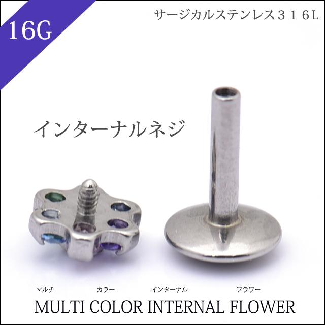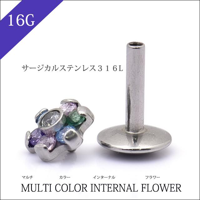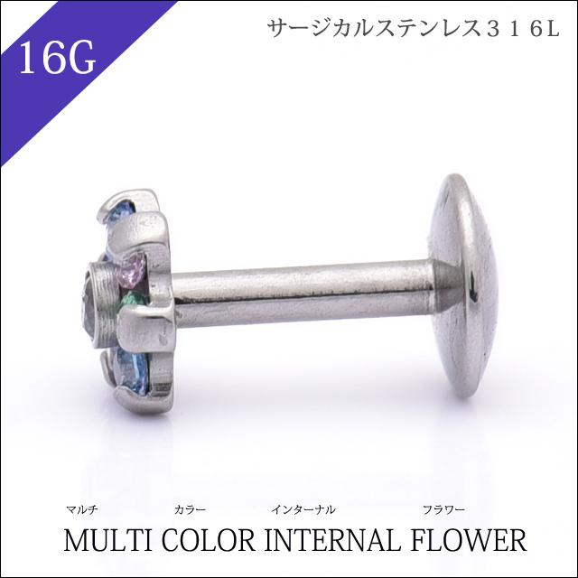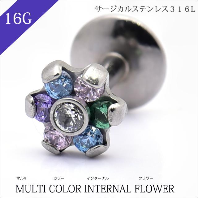 16G マルチカラー お花 フラワーピアス インターナル ラブレットピアス ボディピアス【BodyWell】