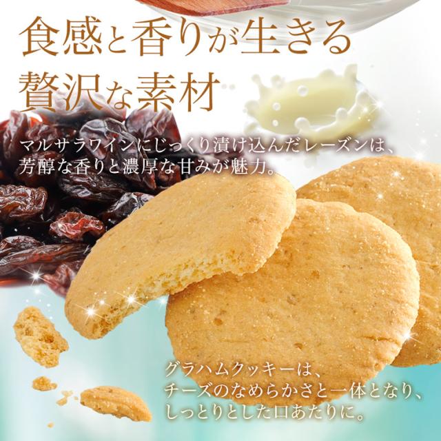 濃厚でコクのあるチーズが口の中で広がり、その後を爽やかなレモンの風味のサワークリームが追いかけます。マルサラワインで漬け込んだジューシーなレーズンやクッキー生地なども加わり、食べすすめるうちに、次々に美味しさが追いかける、まさに魔法のチーズスイーツです。