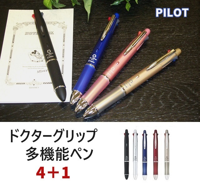 長時間書いても疲れにくいドクターグリップ…4色ボールペン0.7mm+シャープペンシル0.5mmが1本になった多機能ペンです。