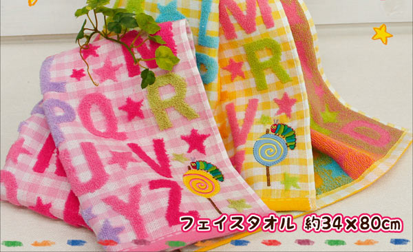 ●エリック・カールの大人気絵本「はらぺこあおむし」のタオル。