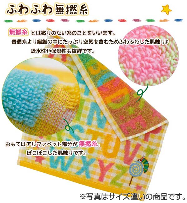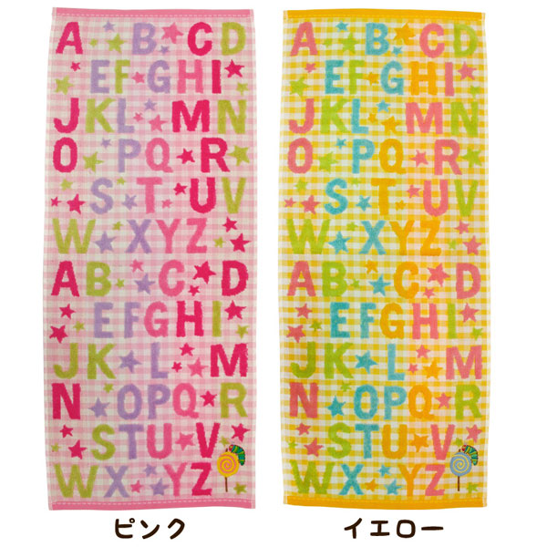 カラフルなパイルのアルファベットとアップリケがかわいいタオル