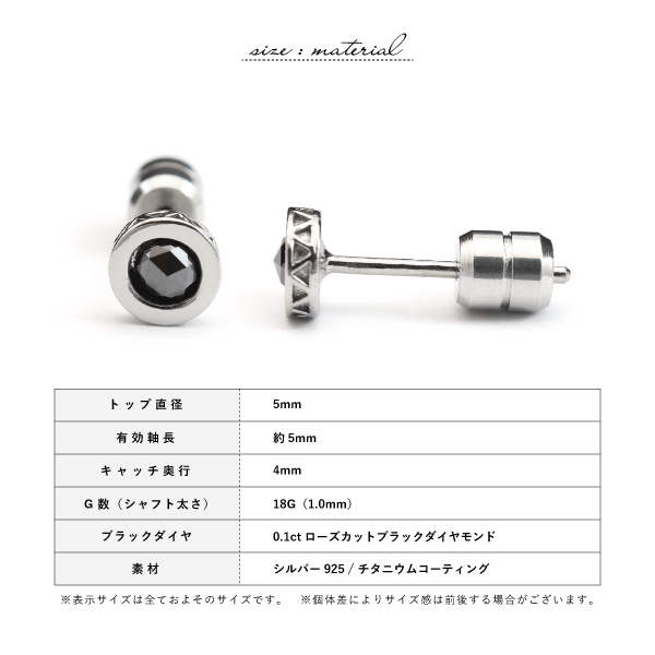 ピアス スタッド ブラックダイヤ ブラックダイア ダイヤモンド ダイアモンド 天然石 ブラック アズーロ AZZURRO メンズ レディース 片耳用 ブランド シンプル
