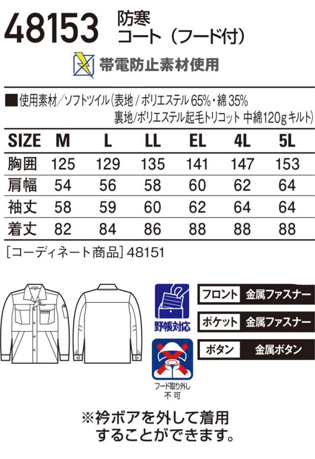防寒服 防寒着 作業服 自重堂 防寒コート 48153