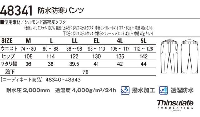 防寒服 防寒着 作業服 自重堂 防水防寒パンツ 48341