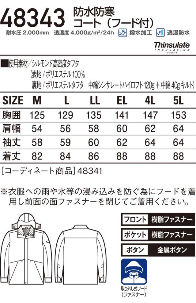 防寒服 防寒着 作業服 自重堂 防水防寒コート 48343