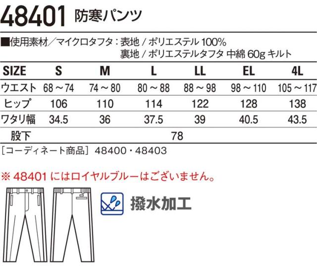 防寒服 防寒着 作業服 自重堂 防寒パンツ 48401
