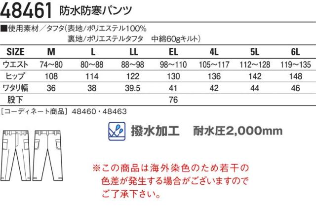 防寒服 防寒着 作業服 自重堂 防水防寒パンツ 48461 大きいサイズ5L・6L