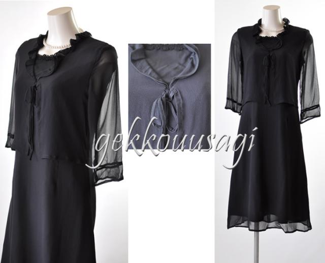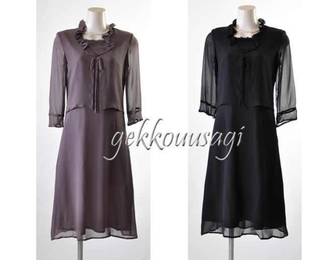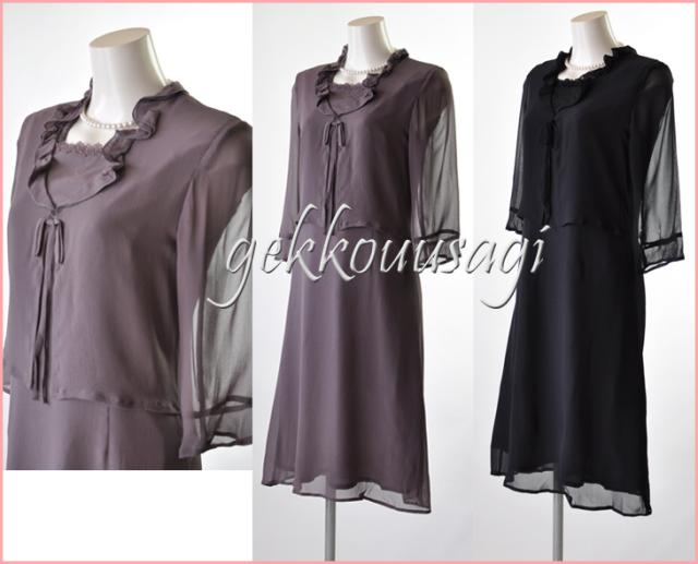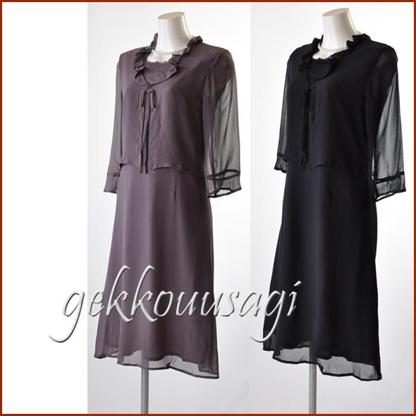 M/L/LL/3L/4L/5L 2枚重ねフリル襟・重ね着風ワンピース 30代 40代 50代 60代 70代 シルク フォーマルワンピース 117/294