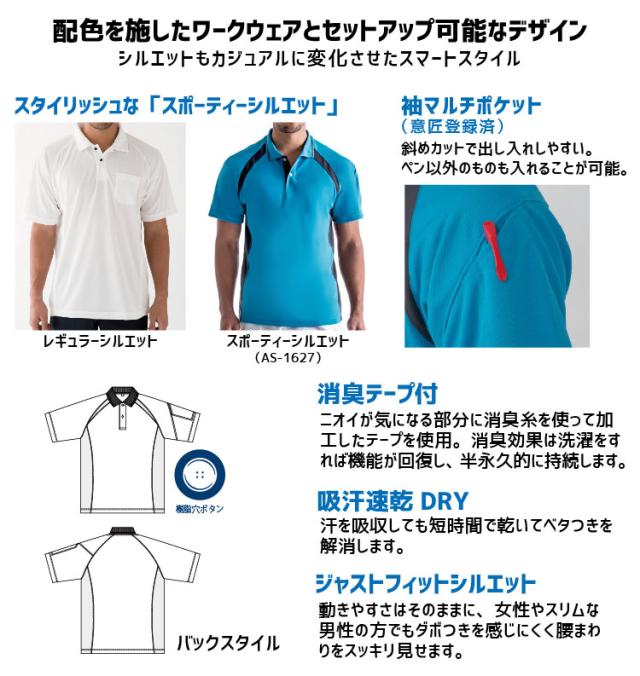 半袖ポロシャツ コーコス AS-1627 CO-COS メンズ レディース 消臭テープ 吸汗速乾 抗菌 防臭 ドライ スポーツ 作業服 作業着 【春夏】