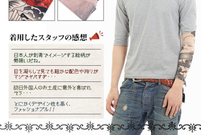 彫り師 が作った タトゥー アームスリーブ アームカバー手彫り 和柄 刺青 入れ墨シャツ 面白Tシャツ 外国人お土産用 4枚入り