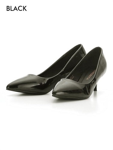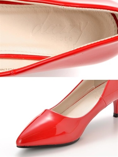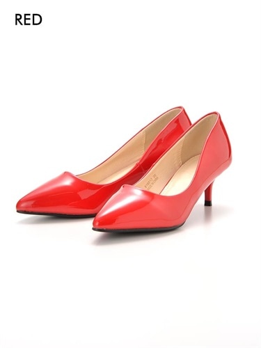 発色が綺麗なエナメルポインテッドトゥパンプス。