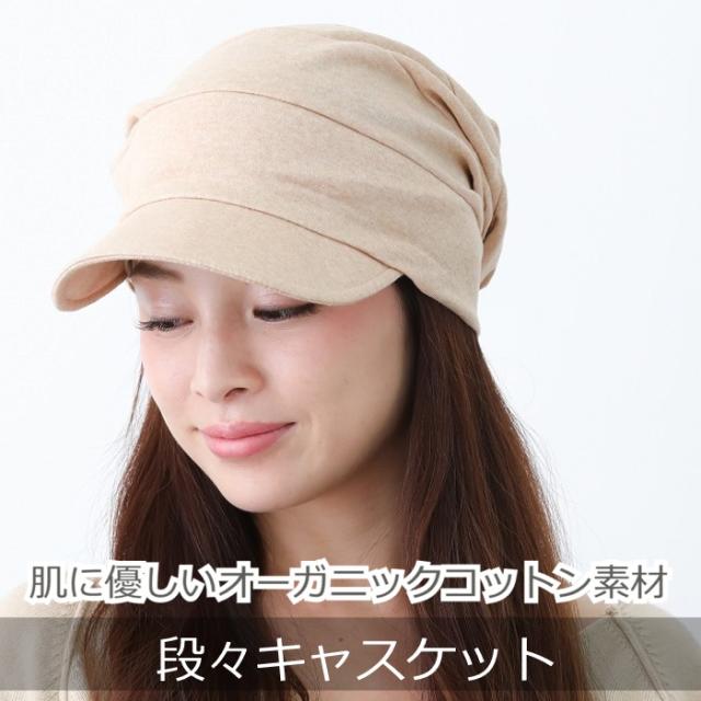 医療用帽子 オーガニックコットン 女性 男性 おしゃれ 抗がん剤 可愛い ケア帽子 脱毛 つば付き 日よけ 外出用 キャップ 春 夏 秋 春用 夏用 薄毛隠し 白髪隠し 紫外線 L M ゆったり 深め 段々キャスケット