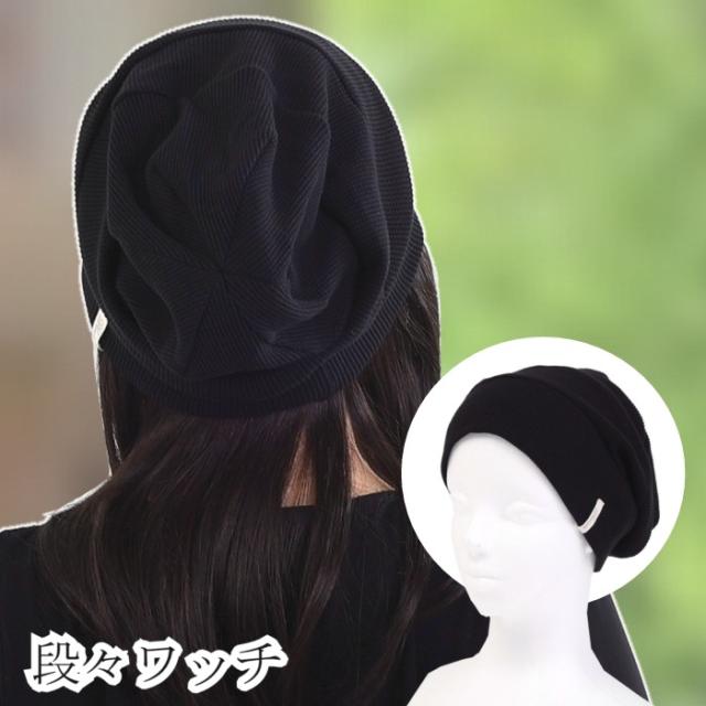 医療用に見えない医療用帽子 オシャレな医療用帽子 段々ワッチブラック
