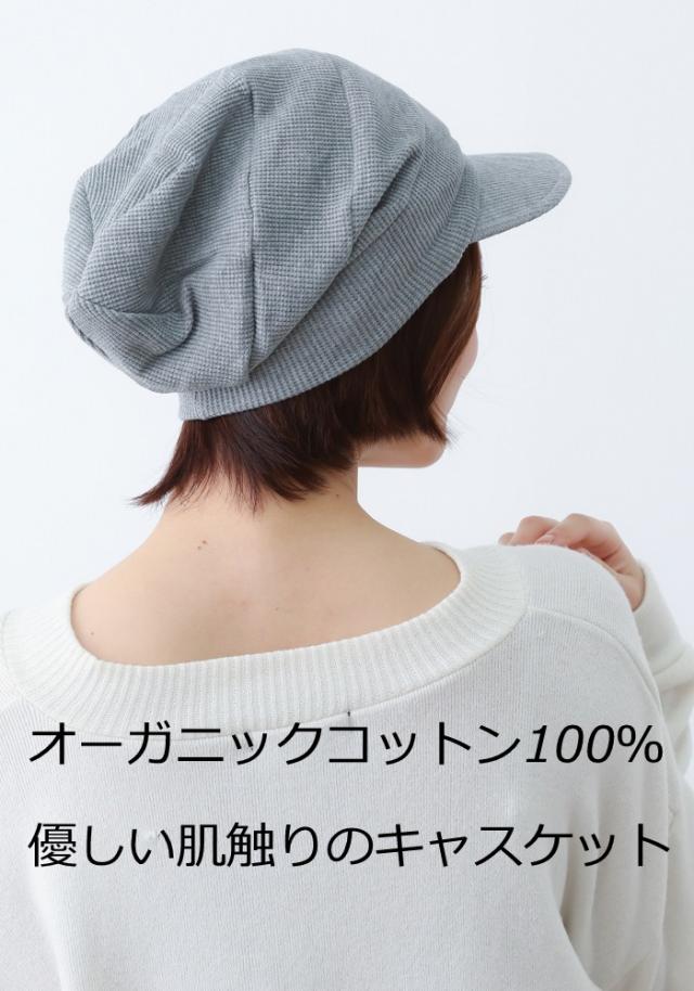 抗がん剤治療や外傷・アトピー等で頭皮の保護を目的とされる方へ最適な医療用帽子/【オーガニックコットン】抗がん剤 帽子【送料無料】レディース/メンズ/医療用に見えない医療用帽子 ワッフル生地で仕上げたカジュアルなキャスケット 。