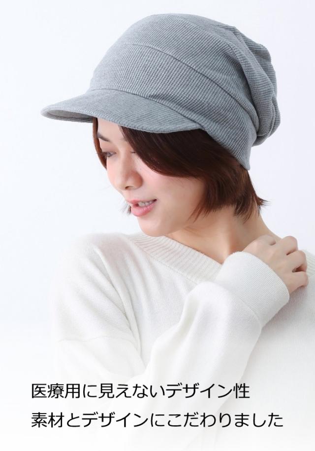 帽子 レディース キャスケット 医療用帽子 夏 大きい コットン 100% つば付き つば広 日除け 日よけ 日よけ帽子 脱毛用 副作用 キャップ 人気 送料無料 春 夏 秋 冬 頭 手術 治療 術後 円形脱毛症 帽子 抗がん剤帽子 ワッフルキャスケット杢グレー