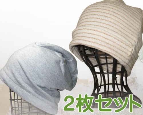 医療帽子 抗がん剤 帽子 ゆったり 深め ニット帽 メンズ レディース ビーニー帽子 グレーとクレープロングワッチナチュラル