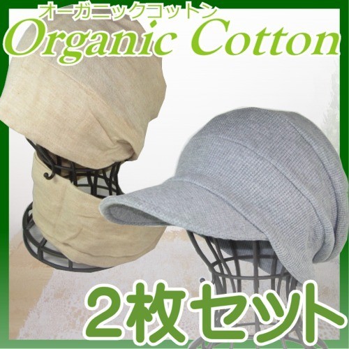 抗がん剤 帽子 医療用帽子 送料無料 ワッフルキャスケット杢グレーとバンダナキャップブラウン