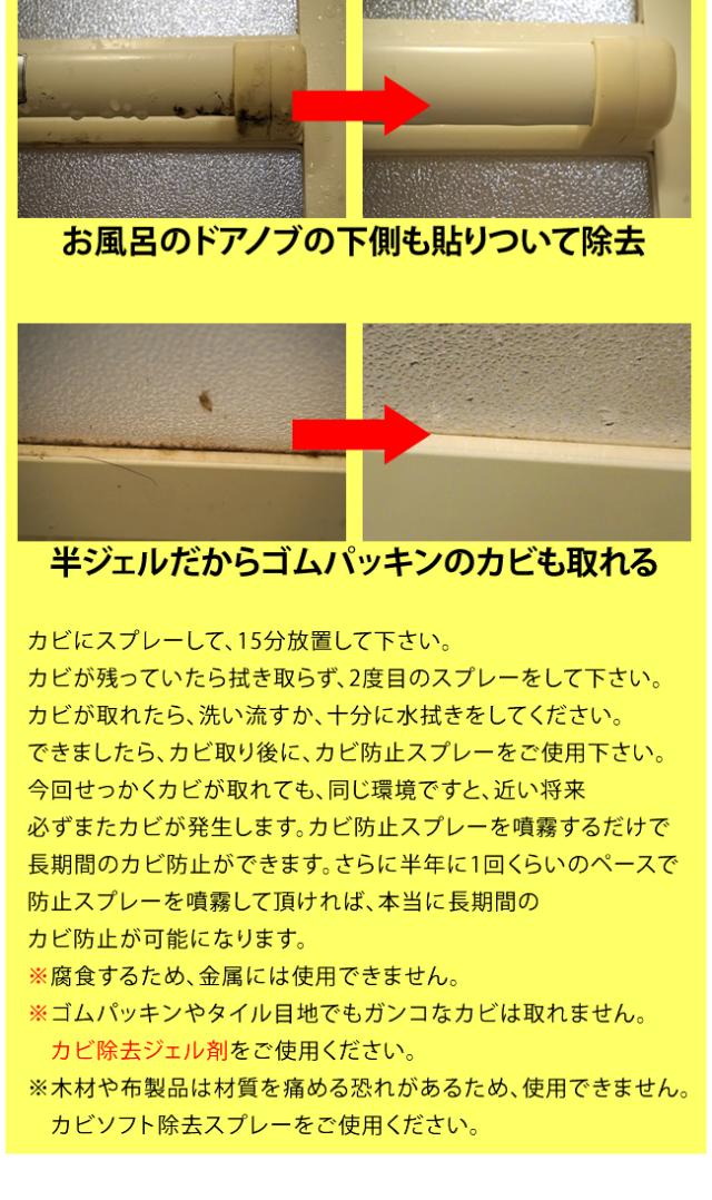 - 壁の上のほうや天井のしつこいカビがなくなっていきます。強力除去スプレーより粘着力があるので重宝しています。また買います。