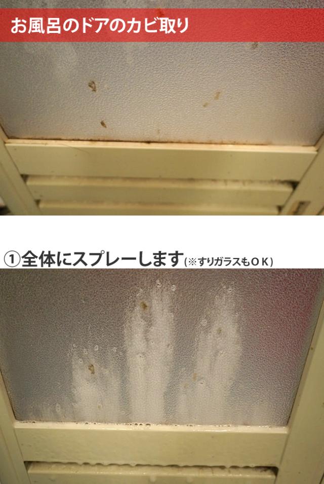 洗い流しか、水拭きが必要なため、広範囲の作業にはカビ強力除去スプレーをご使用ください。