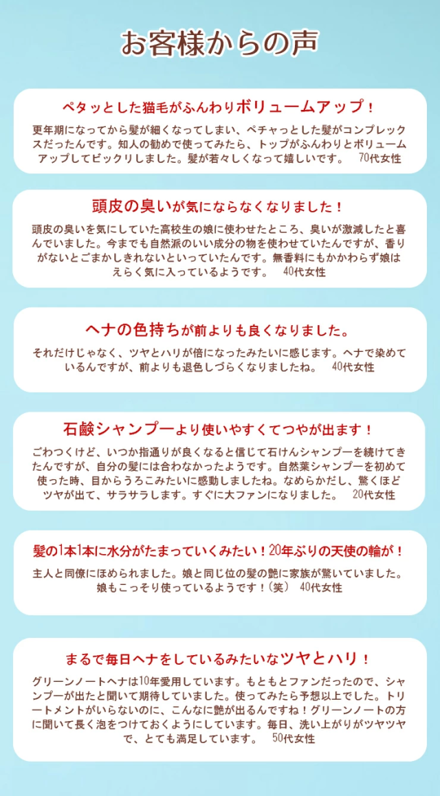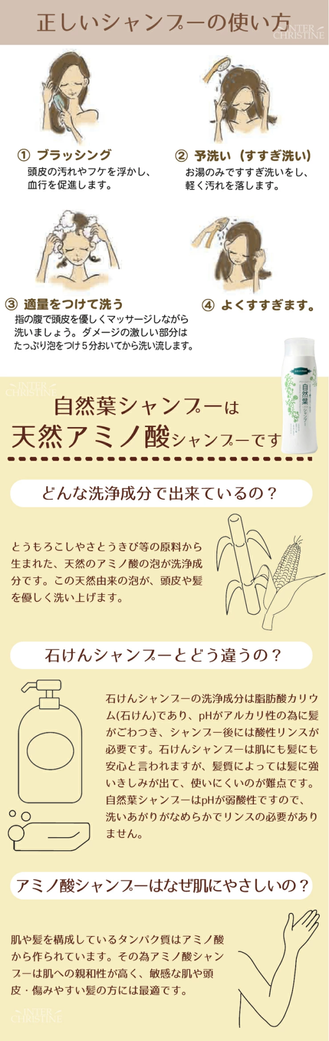 限りなく頭皮にやさしく、洗うたびに頭皮や髪に嬉しい働き。研究者のこだわりから生まれた、新しい自然派のシャンプーです。ヤシやとうもろこしから生まれた天然アミノ酸の洗浄成分と、毛髪を構成する18種の天然アミノ酸を配合。石けんシャンプーよりもさらに使いやすく進化した自然派のシャンプーです。 |