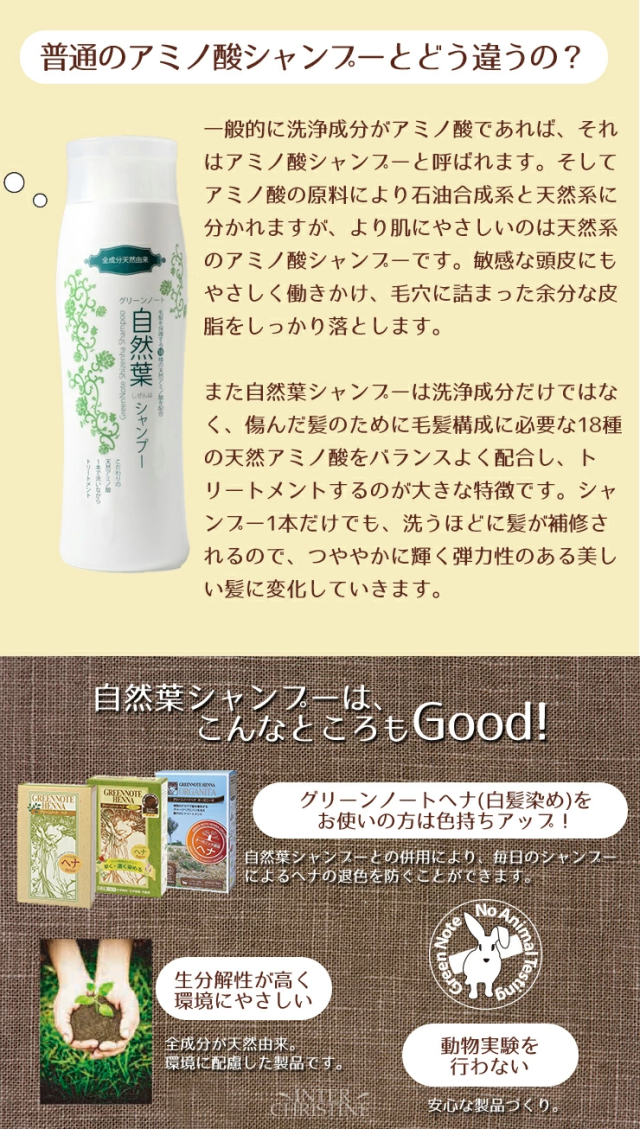 【自然葉シャンプー30ml付】【セット】グリーンノート 自然葉シャンプー 300ml×3本セット