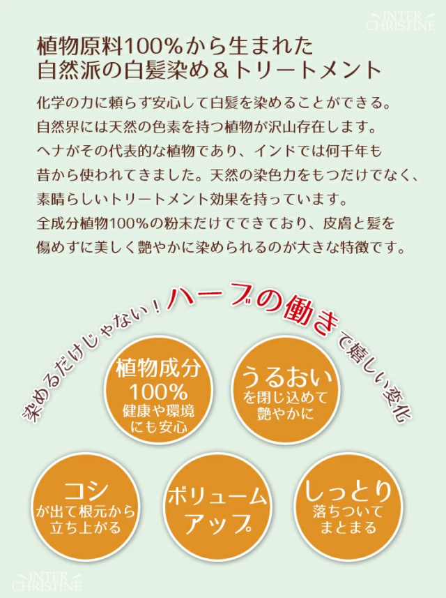 植物染料100%の自然派白髪染め&トリートメント。オーガニック認証。 |