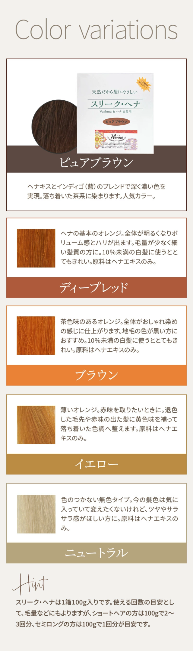天然100%、ナチュラルな白髪染めです。