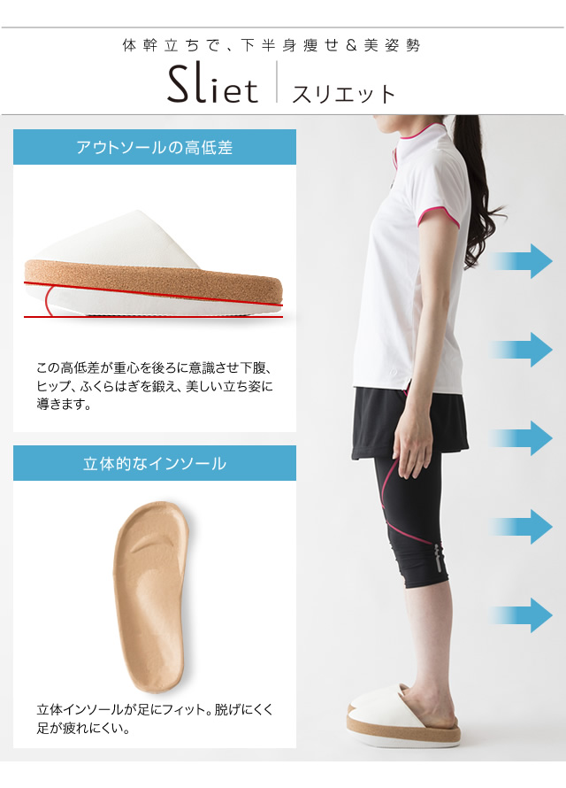 体幹トレーニング スリッパ Sliet スリエット ルームシューズ 美脚スリッパ ダイエットスリッパ 美姿勢 スリッパ 傾斜スリッパ 送料無料