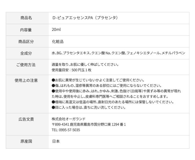 D-ピュアエッセンスPA(プラセンタ) 原液 20ml