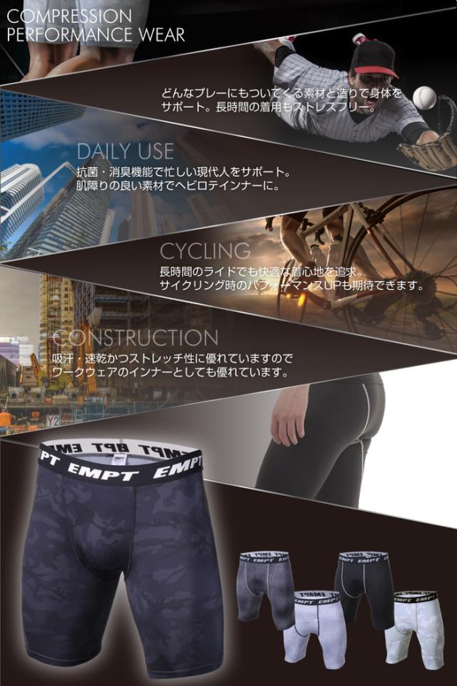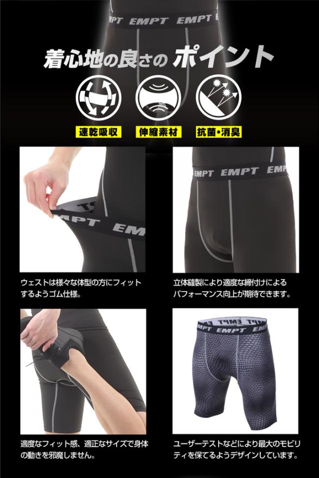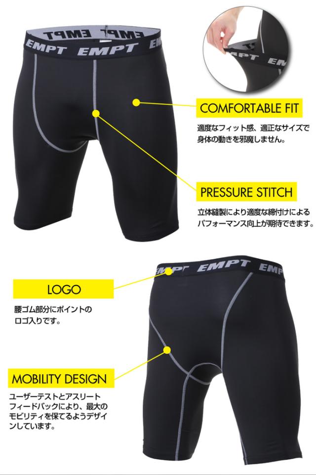 EMPT メンズ コンプレッション ショートタイツ コンプレッションウェア スポーツウェア 春 夏 秋 冬 アンダーシャツ アンダーウェア かっこいい 大きいサイズ 小さいサイズ ジム スポーツ 筋トレ トレーニング ゴルフ サッカー テニス