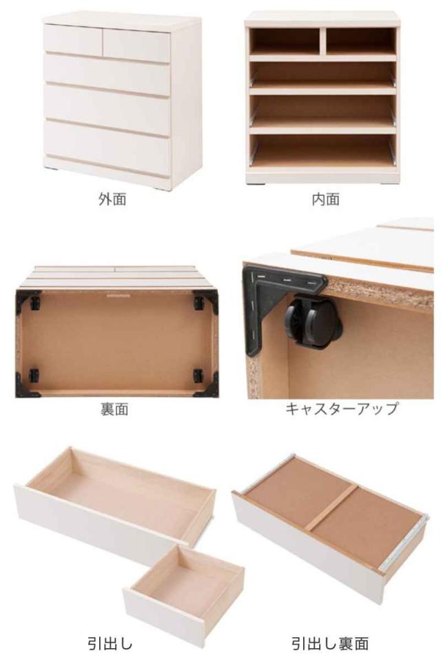引出し間には、地板が入っているので本体の強度が大きくアップします。さらに開けた引出しの底面が下の引出し内の衣類に擦れることを防ぎます。大引出しの裏には、底抜け防止の補強板付きです。