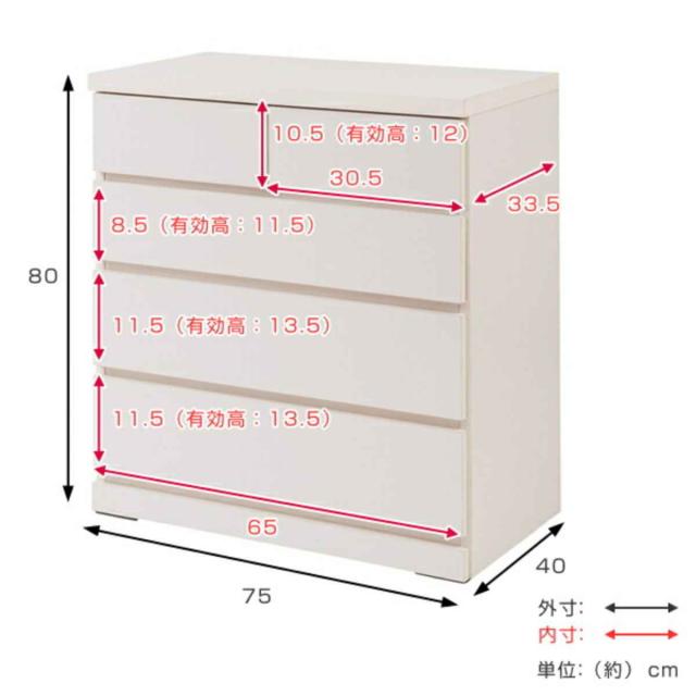 クローゼット収納 タンス 幅75cm 4段 奥行40cm キャスター付 日本製 ( 木製 クローゼット 押入れ 収納 押入れ収納 完成品 組立不要 すぐ使える 国産 たんす キャスター 整理棚 衣替え 衣類収納 引き出し ウォークインクローゼット )
