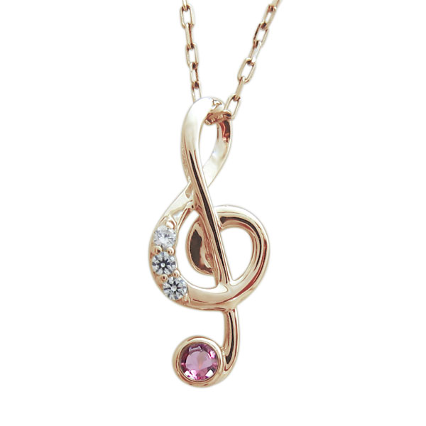 10金 ト音記号 ネックレス 音符モチーフ ペンダント ピンクトルマリン