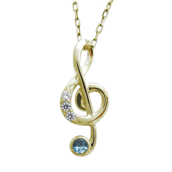 音符モチーフ ネックレス 18金 ペンダント ブルートパーズ ト音記号