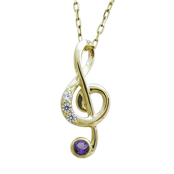 音符モチーフ ネックレス 18金 ペンダント アメジスト ト音記号