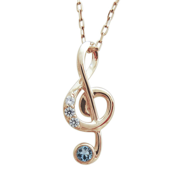10金 ト音記号 ネックレス 音符モチーフ ペンダント アクアマリンサンタマリア