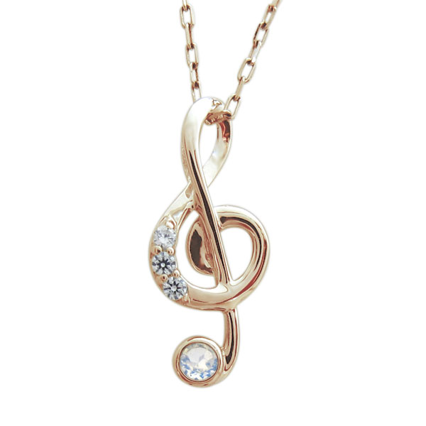 6月誕生石ロイヤルブルームーンストーンを一粒使用した、10金製のト音記号(音符)モチーフネックレスペンダントです。