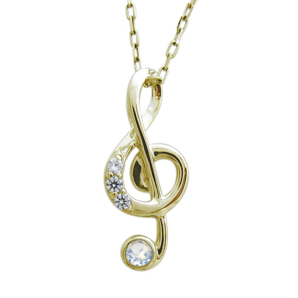 音符モチーフ ネックレス 18金 ペンダント ロイヤルブルームーンストーン ト音記号