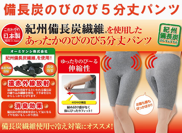 ・遠赤外線を放射すると言われているオーミケンシ株式会社の「紀州備長炭繊維」を使用したあったかのびのび5分丈パンツ!