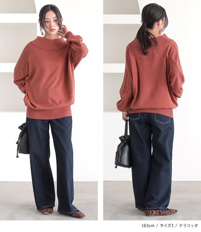 - いつも早い発送ありがとうございます。グレーを購入したのですが、写真より色が濃く、生地も厚いので、太く見えるような気がします。モデルさんのように、テラコッタにすれば良かったかな。細い人が着たら、絶対可愛...