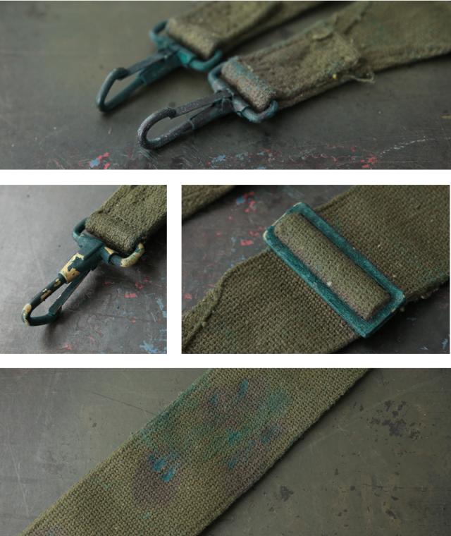 米軍実物放出品のコットンキャンバス製のキャリングストラップです。多目的用として支給されていたため、両端にスプリングフックが付けられています。フィールドパック、ダッフルバッグ、ボストンバッグ、ハンドバッグ、などフックやDカンが付いていればショルダーバッグとして使用することが可能です。