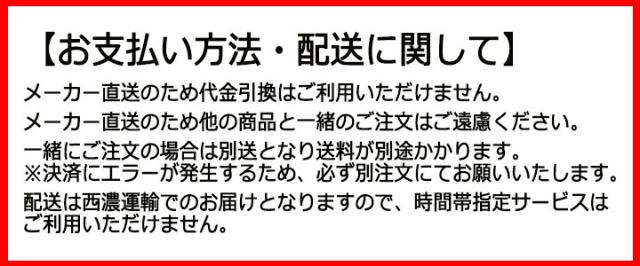 メーカーより直送となりますので、代金引換不可となります。他の商品と一緒のご注文はご遠慮ください。 一緒にご注文の場合は別送となり、送料が別途かかります。※決済にエラーが発生してしまいますので必ず別注文にてお願いいたします。
