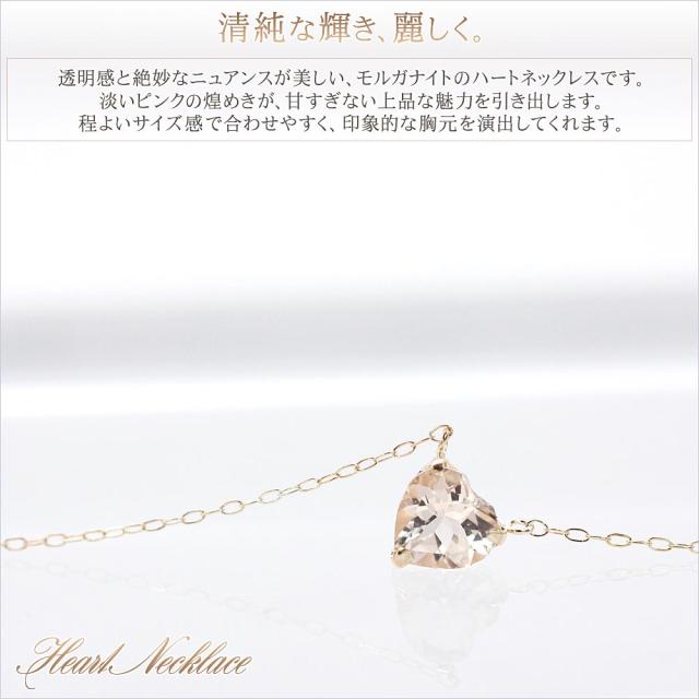 ハート 18金 ネックレス k18 モルガナイト ハート形 レディース 18k プレゼント 可愛い 18金 ジュエリー 4月 誕生石 薄い ピンク 18金ネックレス ハートネックレス シンプル 一粒 母の日 ギフト 2026 誕生日 贈り物 女性 彼女 嫁 娘
