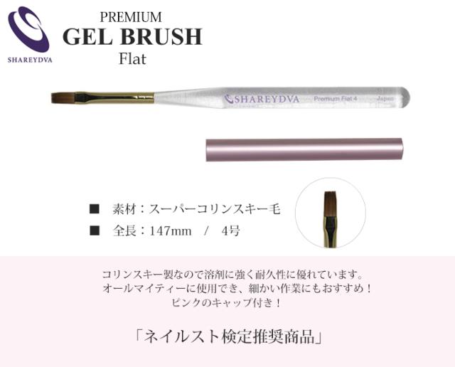 ジェルネイル 筆 SHAREYDVA(シャレドワ) プレミアムジェルブラシ フラット#4(スーパーコリンスキー毛)