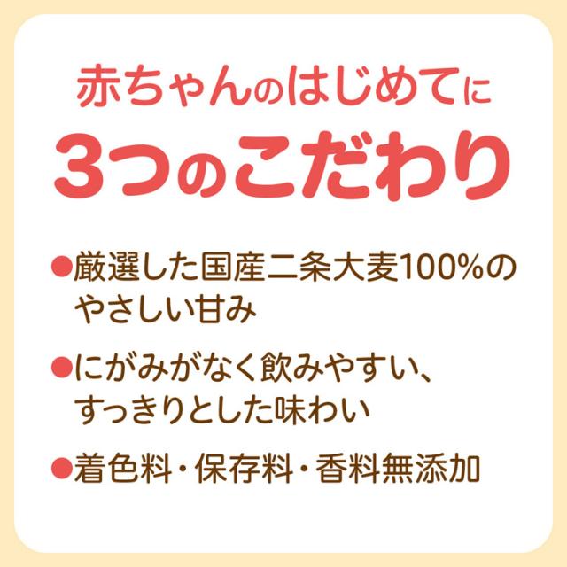 国産二条大麦を使用したお茶(ベビー用)です。苦みが少なくマイルドな味です。