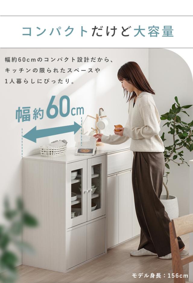 食器棚 ロータイプ スリム 幅60 奥行38.8 高さ81.6 一人暮らし キャビネット 北欧 おしゃれ 韓国 扉付き ガラス扉 白 収納棚 引き出し キッチンボード サイドボード キッチン リビング 収納 アイリスオーヤマ ガラスキャビネット GKN-9060R *