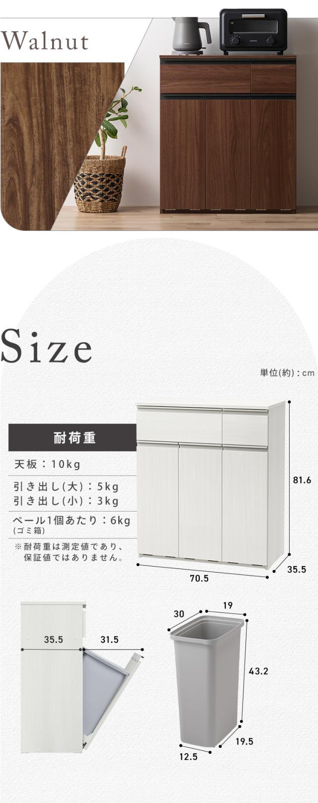 \2,000円OFFクーポン!~3/11 9:59/キッチンカウンター ゴミ箱収納 幅70.5 奥行35.5 高さ81.6 ゴミ箱 おしゃれ キッチン アイリスオーヤマ キッチンラック ゴミ箱付き キッチンボード キ カウンター ダストボックス 3分別 キッチン棚 新生活 ペールカウンター PKT-8670R *