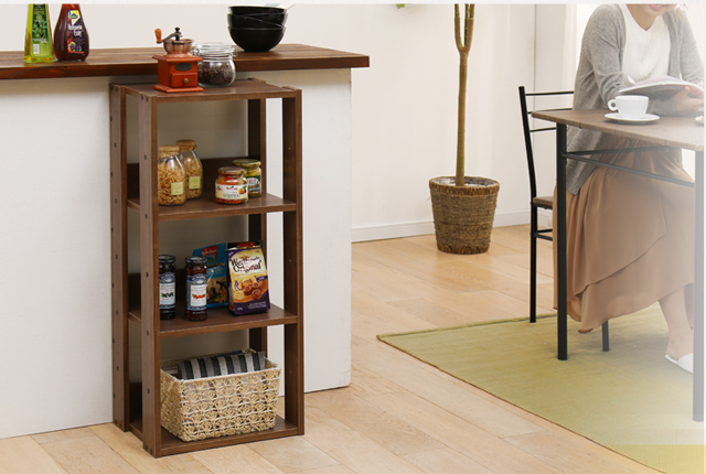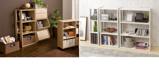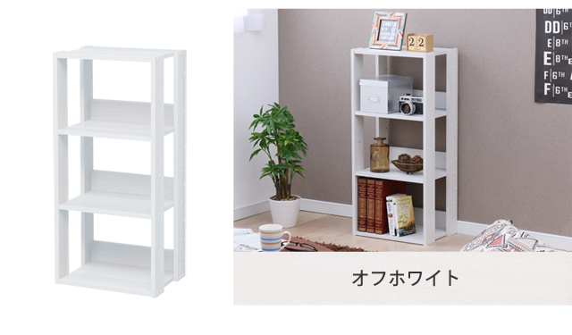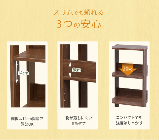 置く物に合わせて約14cm間隔で棚板の位置が調整可能です。
