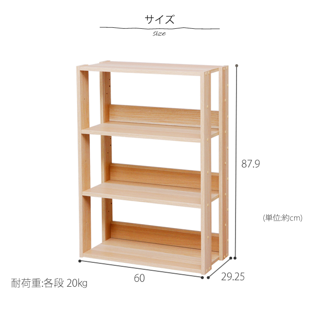 (天板20kg、底板20kg、棚板1枚あたり20kg)